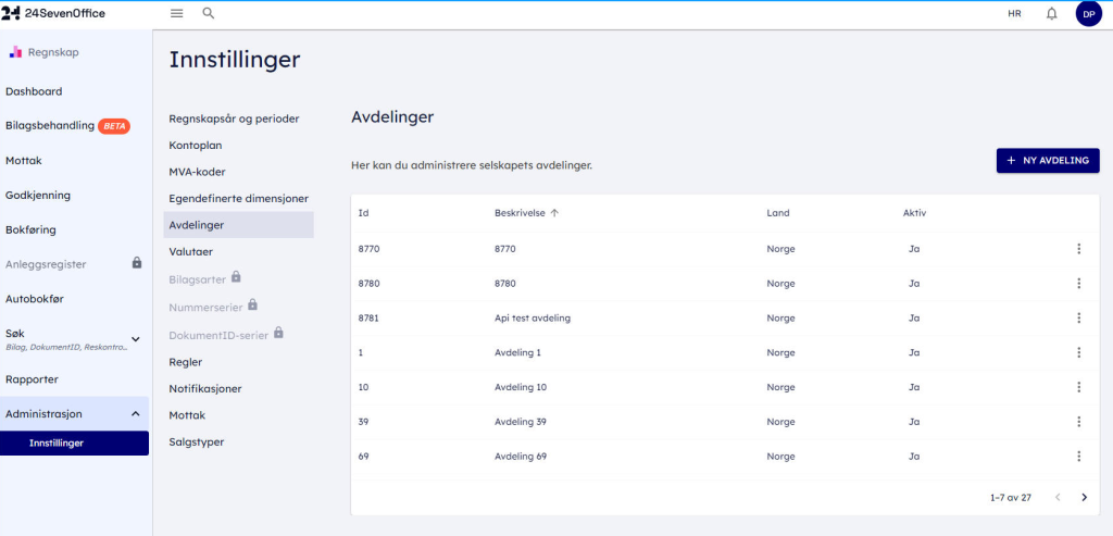 Er det flere avdelinger, må det også stilles en slik innstilling for hver avdeling.